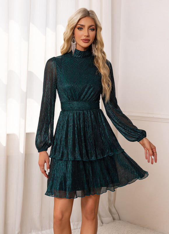 Découvrez cette sublime robe longue verte Lili Et Lala qui allie sophistication et modernité. Confectionnée dans un tulle délicat aux reflets émeraude profonds, cette pièce exceptionnelle capture parfaitement l'essence du glamour hivernal. Sa silhouette trapèze flatteuse épouse délicatement votre corps avant de s'évaser gracieusement, créant un mouvement fluide à chaque pas. Les manches longues bouffantes apportent une touche romantique tandis que le col montant sophistiqué encadre élégamment le visage. La texture brillante et scintillante du tissu capte magnifiquement la lumière, garantissant que vous serez le centre de l'attention lors de vos événements festifs.