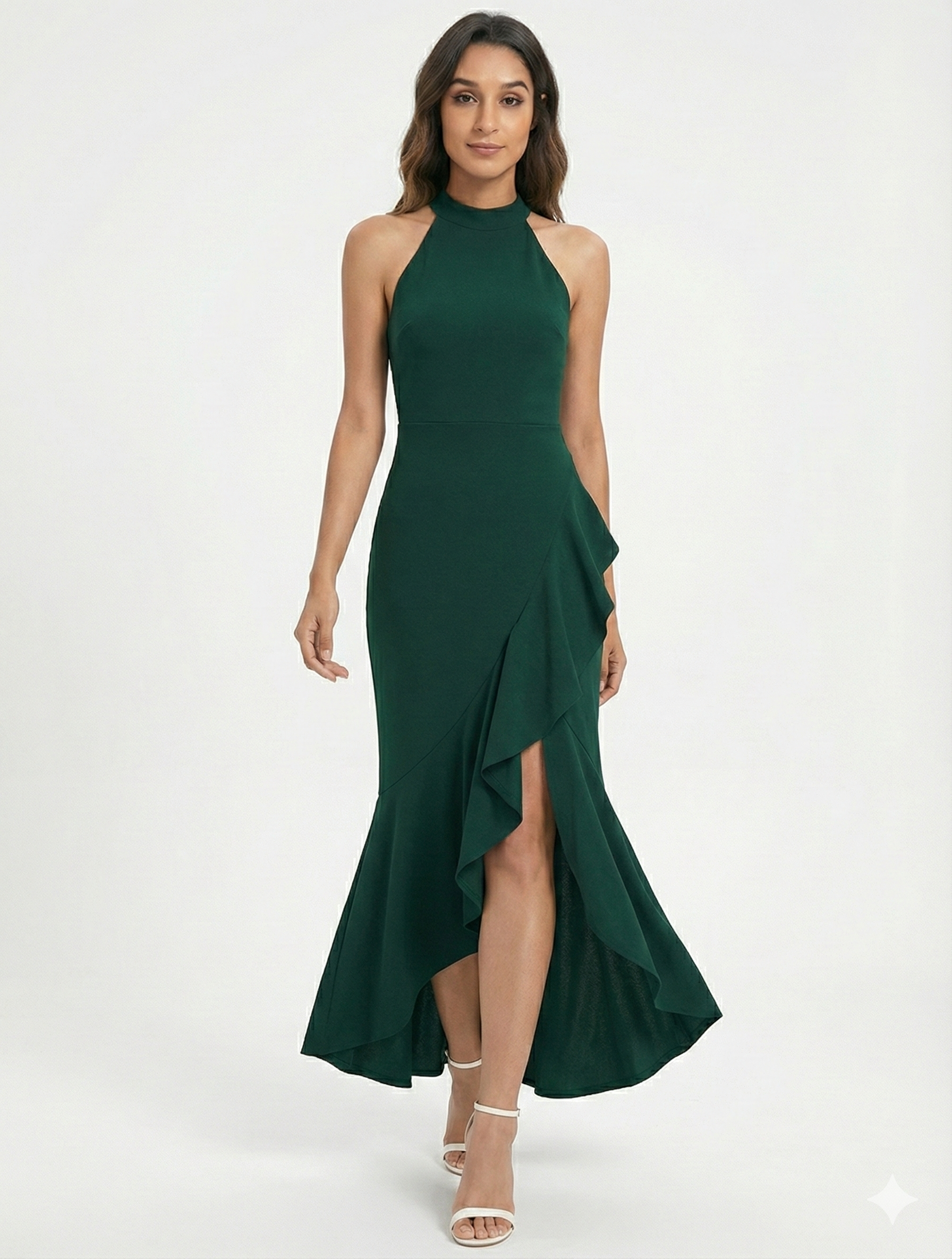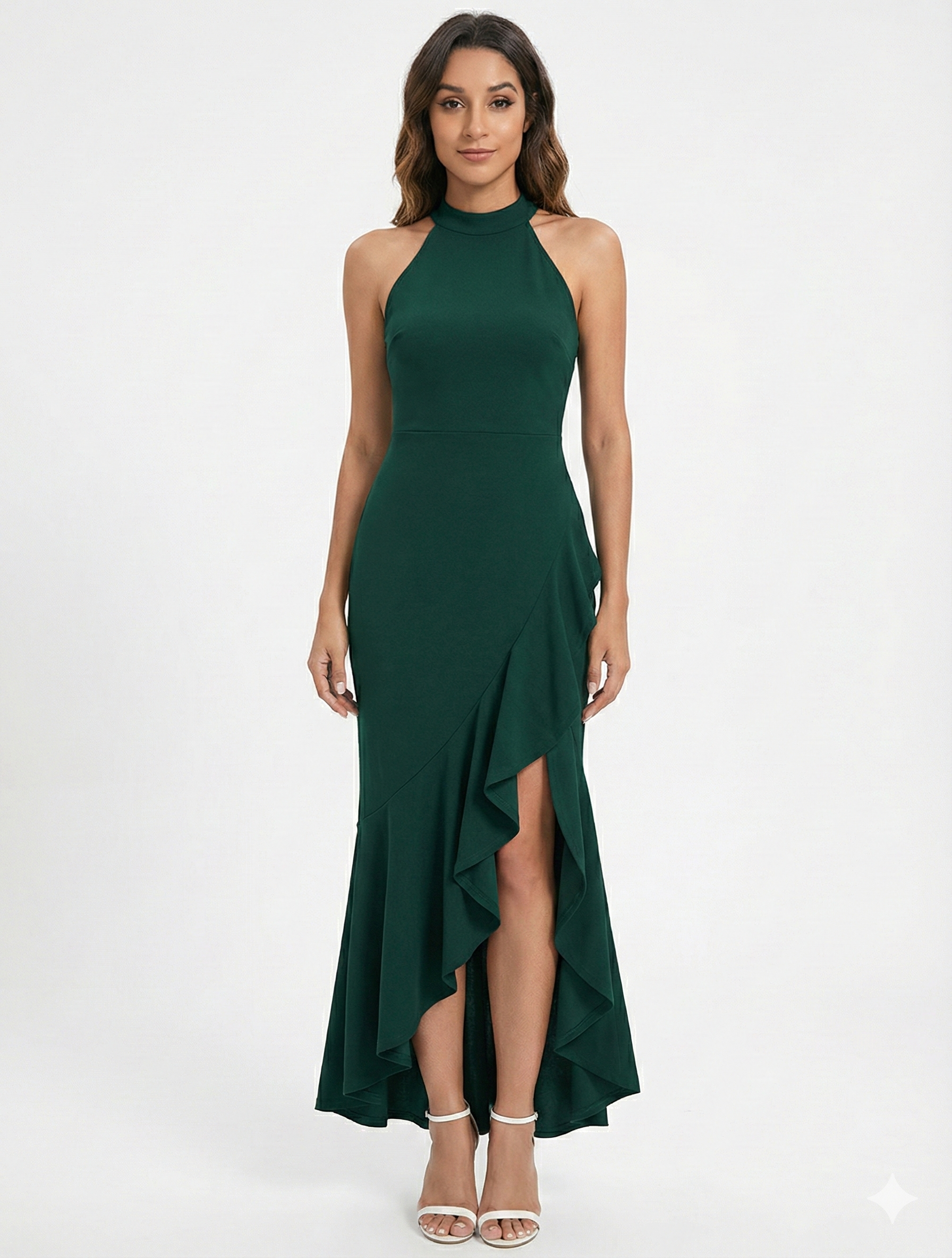Robe Sirène Chic À Volants Verts : L'élégance incarnée pour vos soirées
